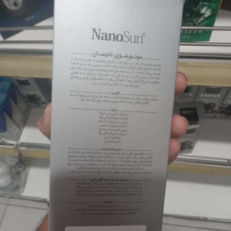 در انتهای موتور شوی خودرو نانوسان تقلبی هیچ گونه آرم شرکت نانوسان وجود ندارد